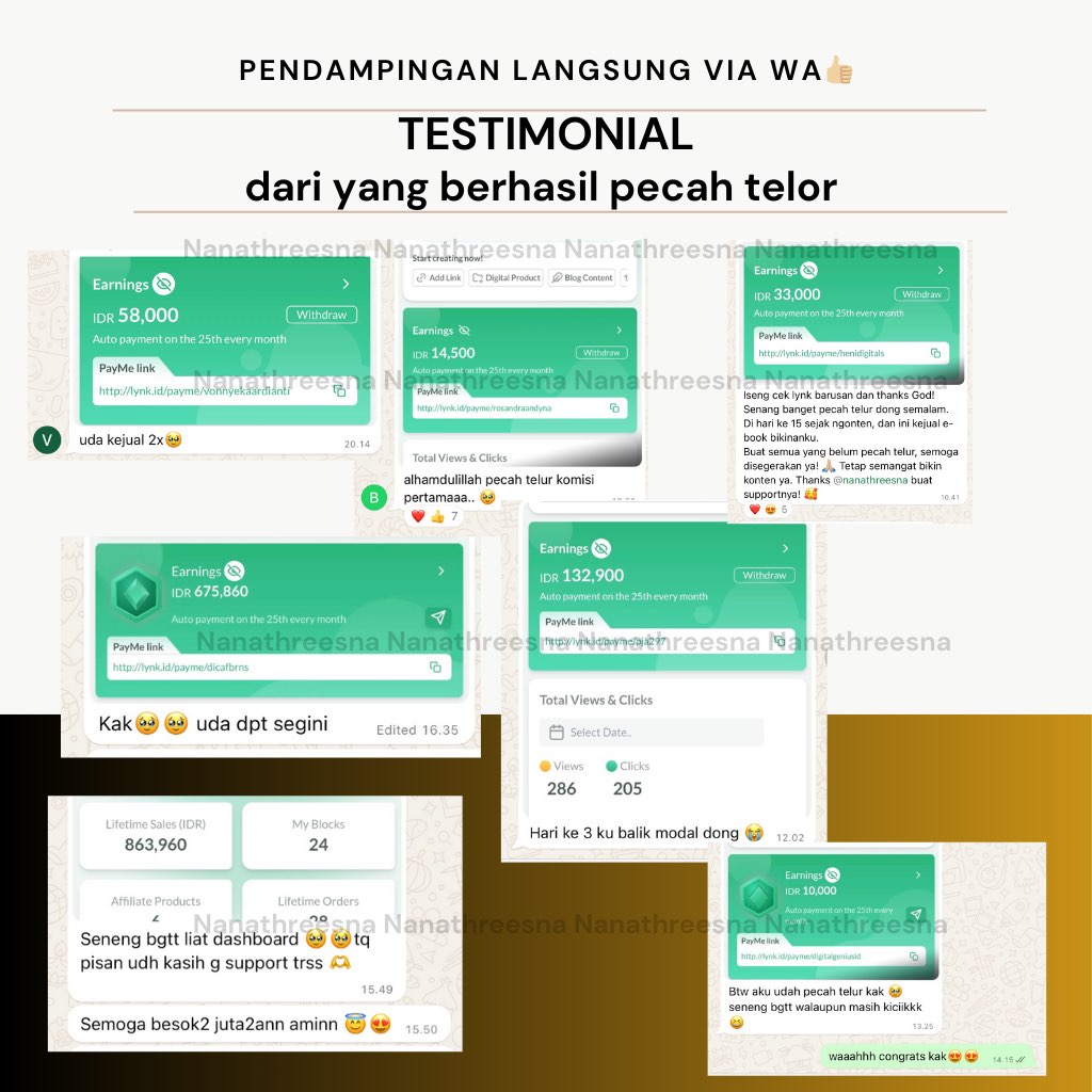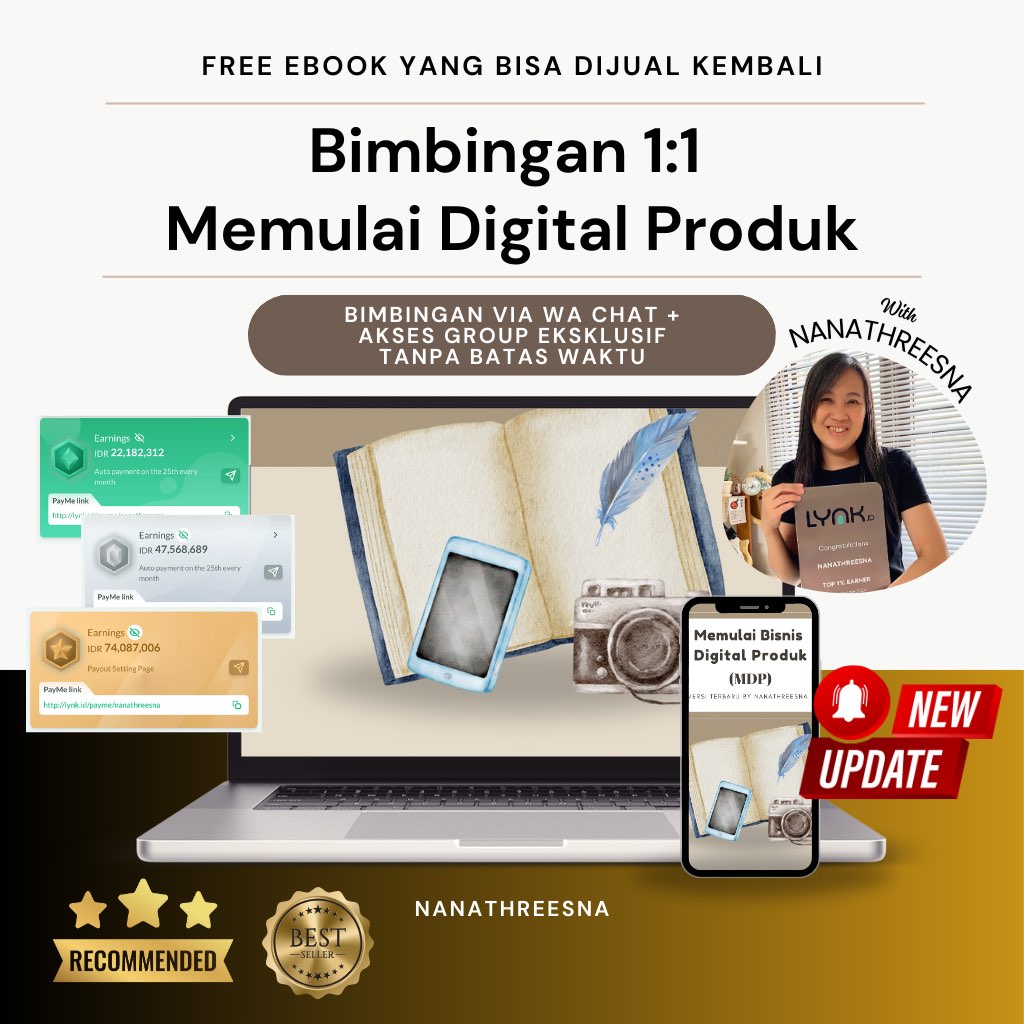 Bimbingan 1:1 DIGITAL PRODUK – Full Pendampingan di WA privat chat with Nanathreesna & Akses Group Eksklusif (Termasuk Ebook yang bisa Dijual Kembali, Keuntungan 100%)